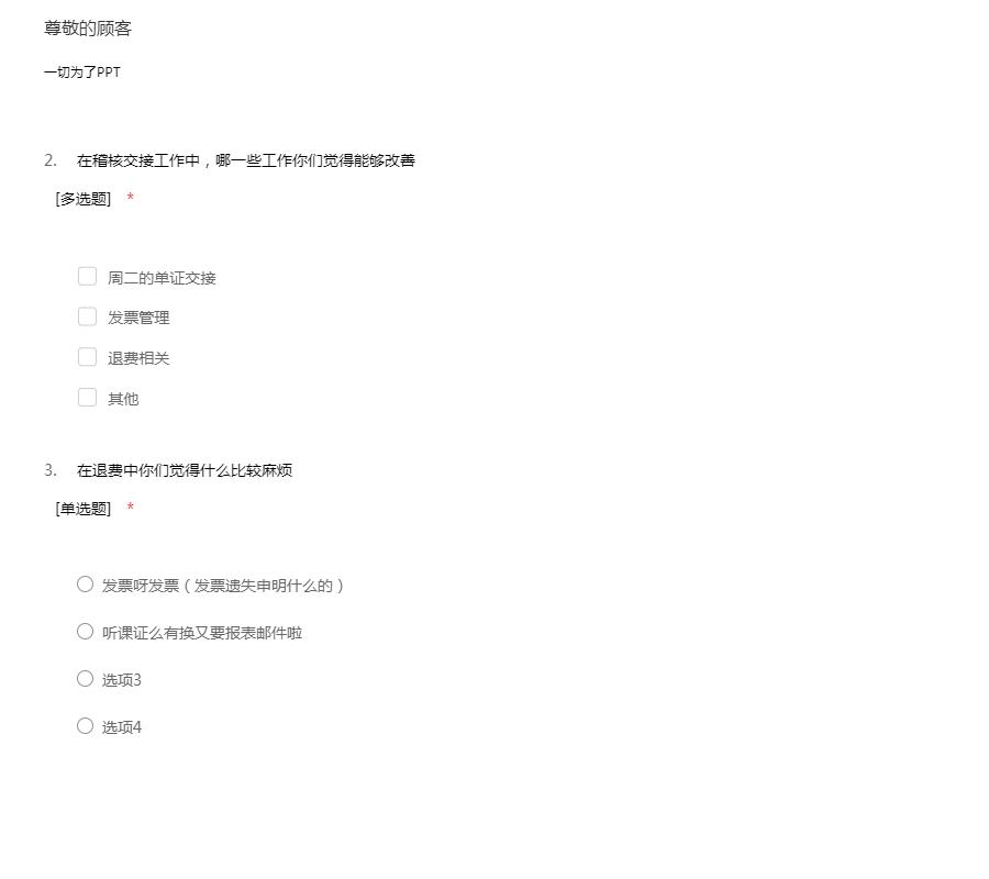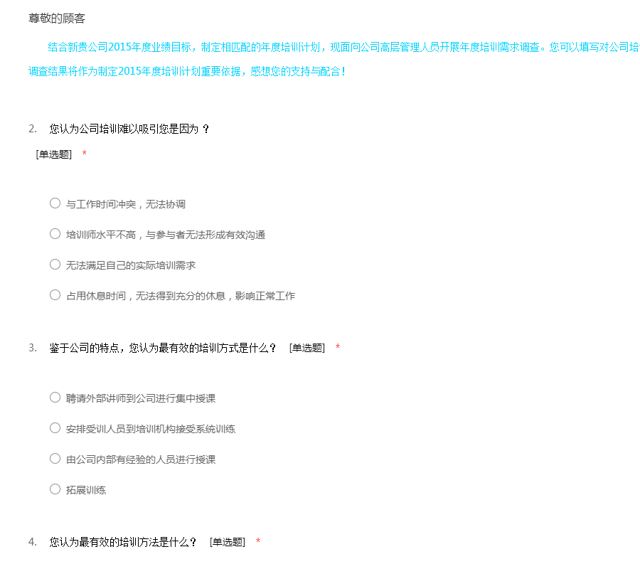 工作环境:包含工作管理环境和周边的自然环境,还有工作的安全性:该要项的设置目的是用于测量您的员工如何看待诸如他们的工作环境条件、设备工具的质量以及在工作场所当中对于安全的整体意识等方面问题。每一个组织都要对员工的健康和安全负责。一个缺乏安全保障的工作环境将导致各类事故、法律诉讼和工作延迟等一系列问题。所有这些事故可能给您的组织带来非常巨大的损失。该要项下的所有问题将调查您的员工对于公司的设施工具是否满意,他们是否相信工作是在以一种安全的方式进行,以及提供给他们的工具设备是否能够满足他们去安全成功地完成工作。员工工作环境满意度问卷模板由我要调查网(http://www.51diaocha.com)提供。