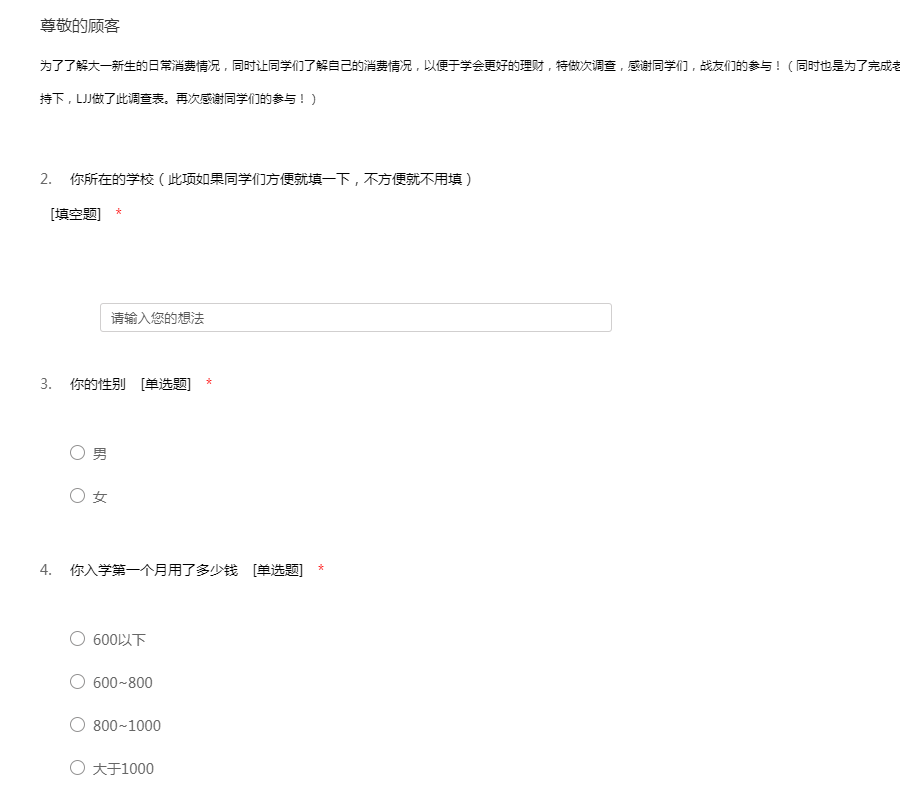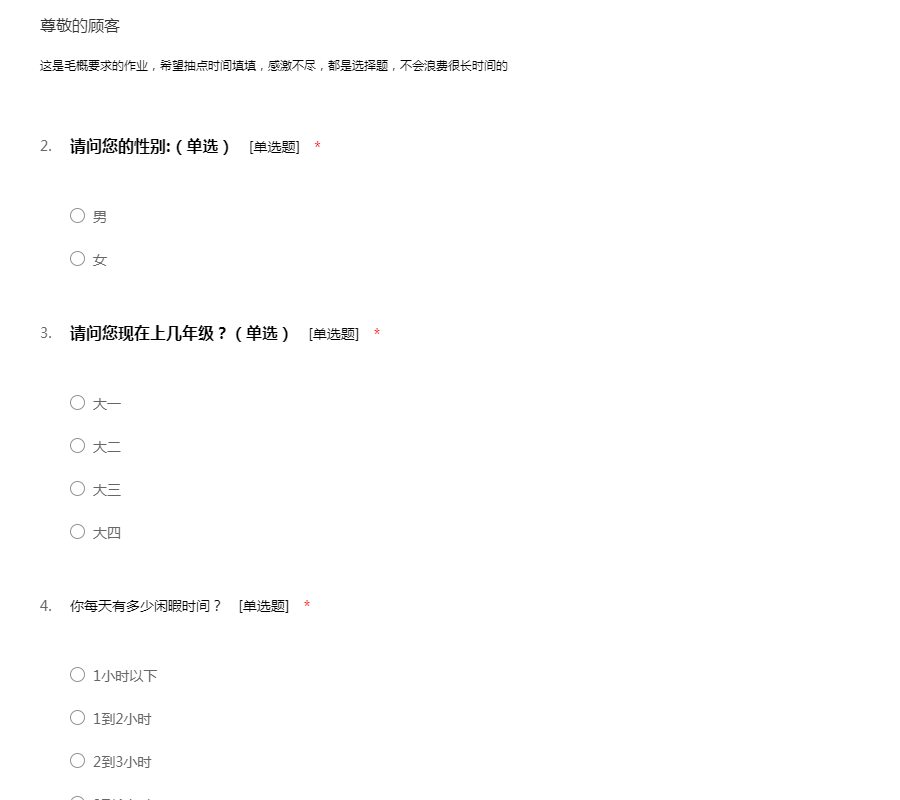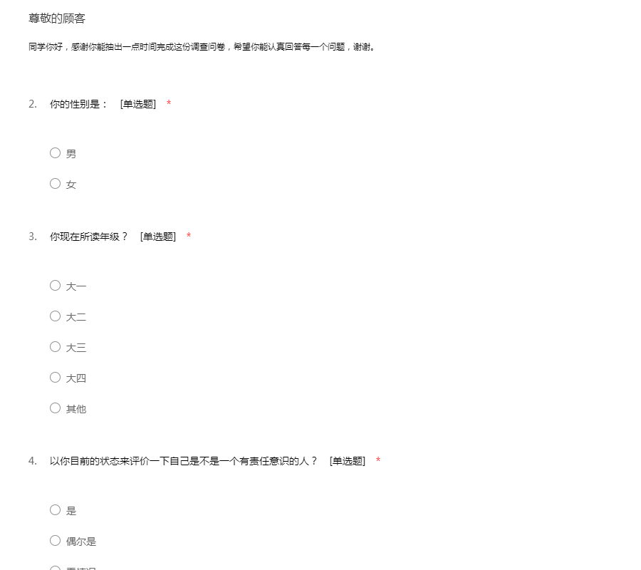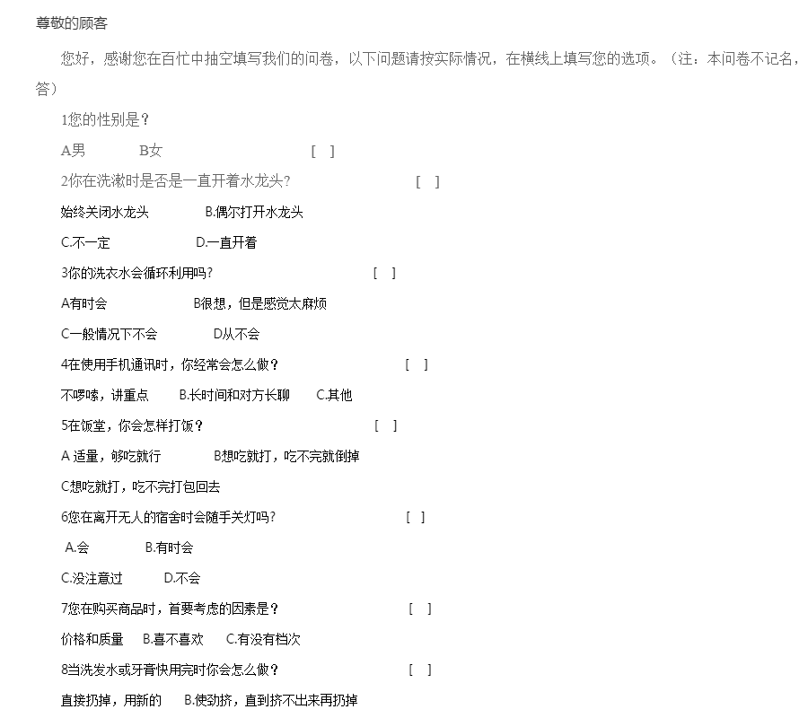 您好,感谢您在百忙中抽空填写我们的问卷,以下问题请按实际情况,在横线上填写您的选项。(注:本问卷不记名,请您按照您真实的情况和想法做答)