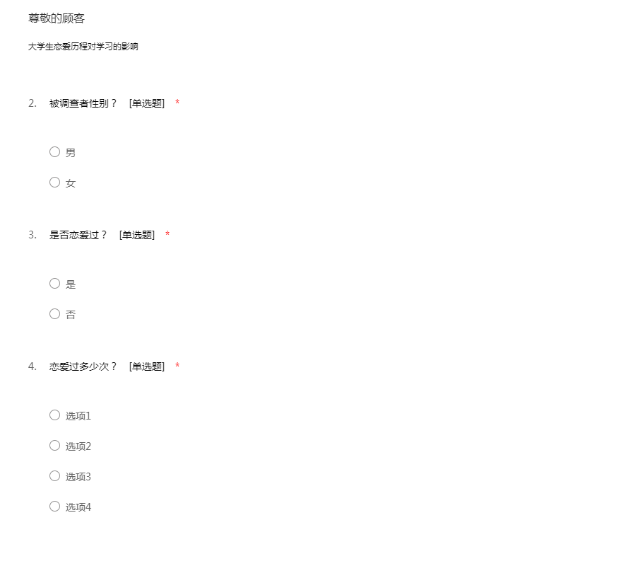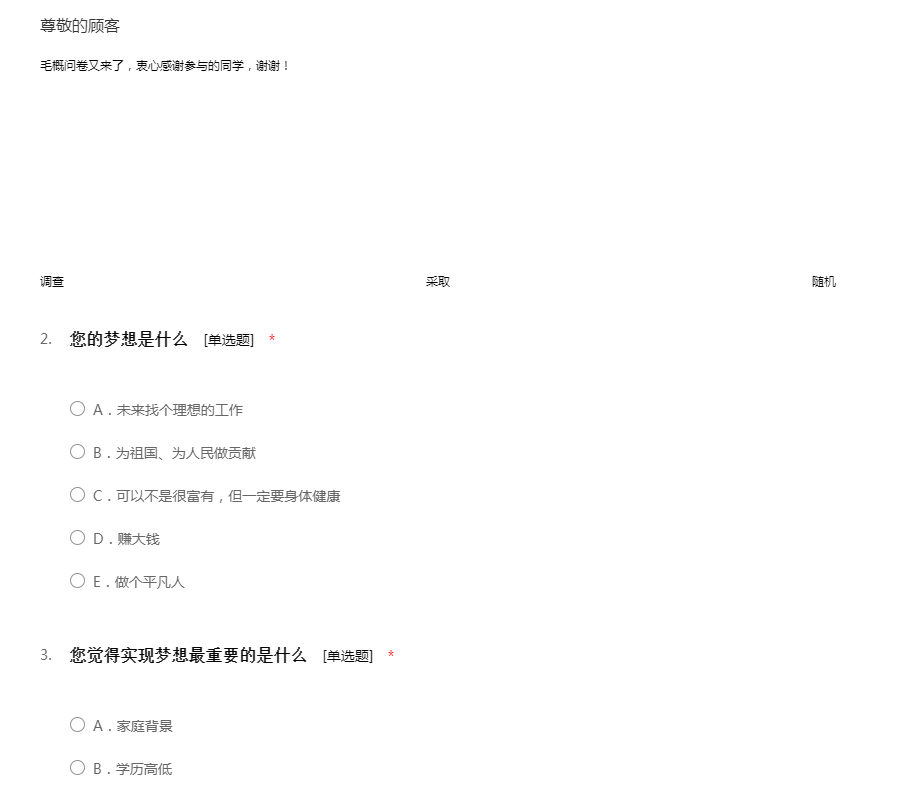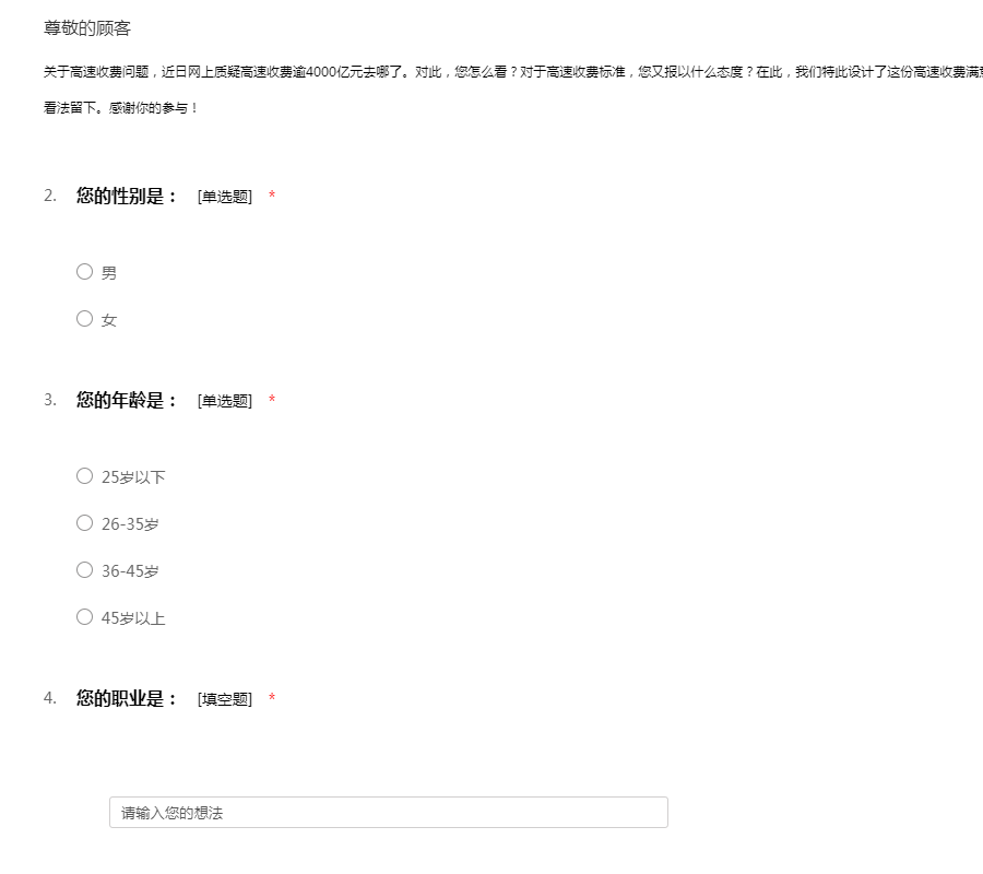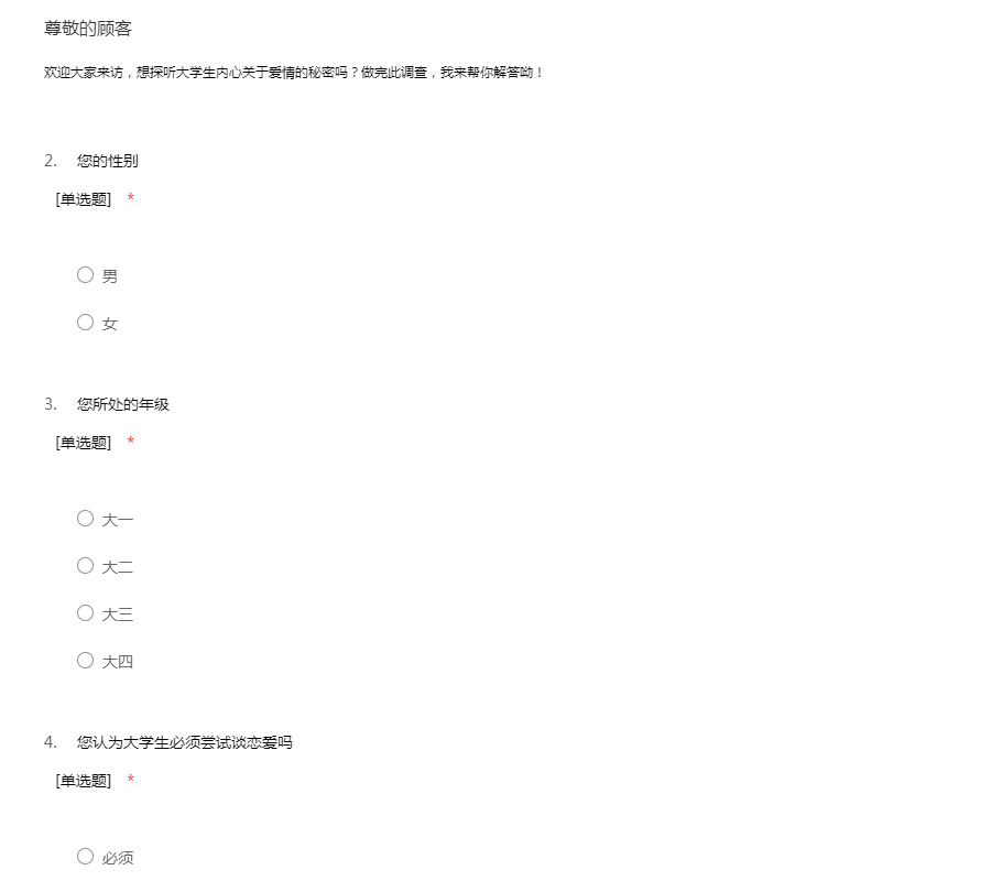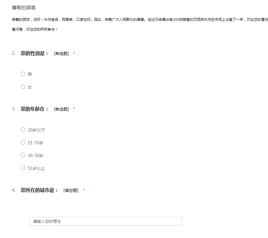 您好,感谢您在百忙中抽空填写我们的问卷,以下问题请按实际情况,在横线上填写您的选项。(注:本问卷不记名,请您按照您真实的情况和想法做答)