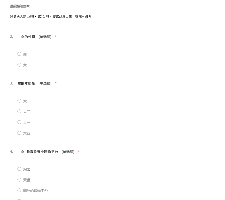 各位同学你们好,我们正在做一份调查关于大学生兼职情况的思修实践作业,请大家话费一丢丢的时间帮忙填一下