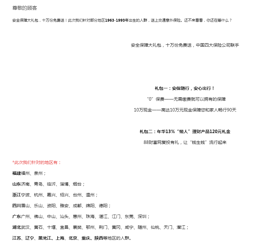 安全保障大礼包,十万份免费送!此次我们针对部分地区1963-1993年出生的人群,送上交通意外保险。还不来看看,你还在等什么?