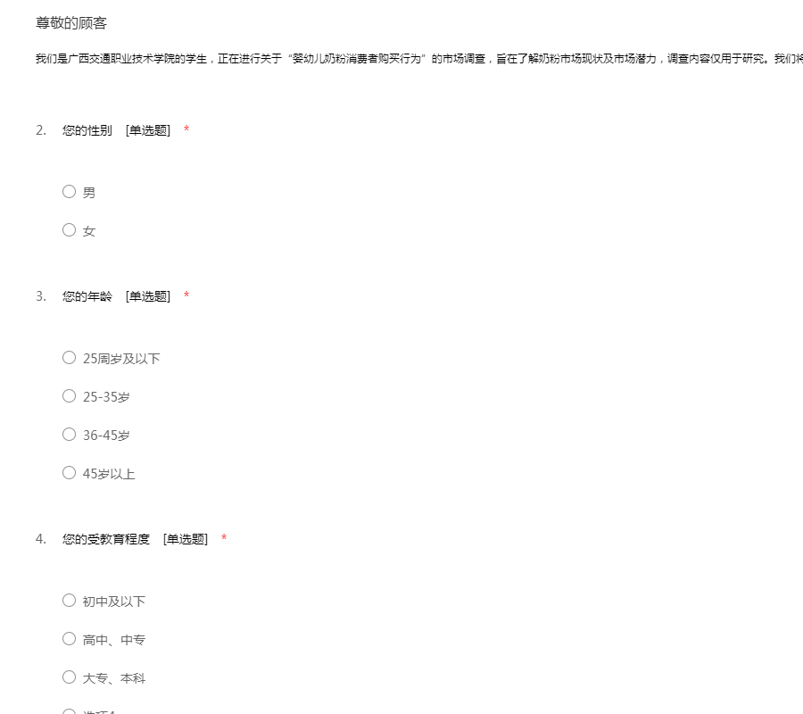 我们是广西交通职业技术学院的学生,正在进行关于“婴幼儿奶粉消费者购买行为”的市场调查,旨在了解奶粉市场现状及市场潜力,调查内容仅用于研究。我们将不会透露您的个人信息。