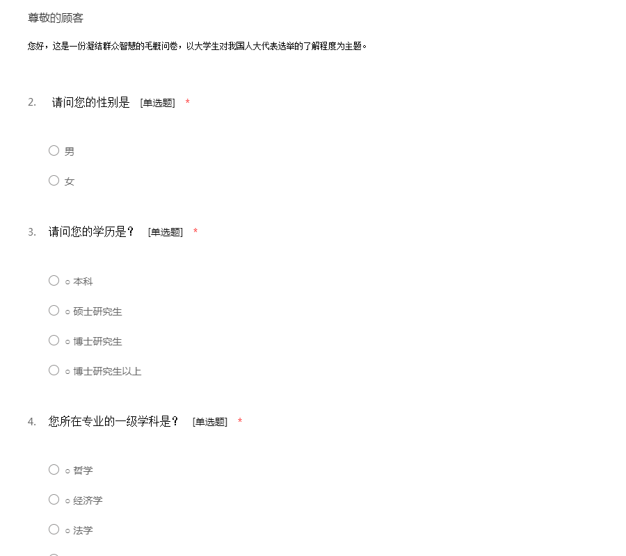 您好,这是一份凝结群众智慧的毛概问卷,以大学生对我国人大代表选举的了解程度为主题。