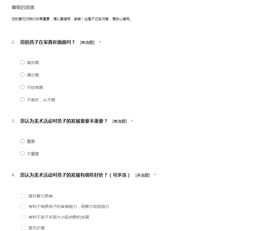 您的意见对我们非常重要,请认真填写,谢谢!这是不记名问卷,请放心填写。