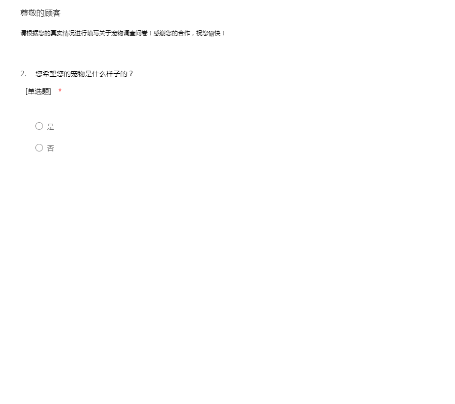 请根据您的真实情况进行填写关于宠物调查问卷!感谢您的合作,祝您愉快!