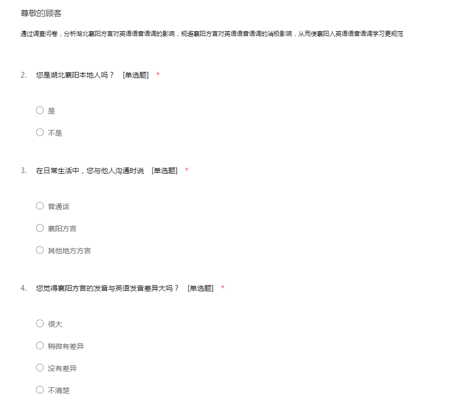 通过调查问卷,分析湖北襄阳方言对英语语音语调的影响,规避襄阳方言对英语语音语调的消极影响,从而使襄阳人英语语音语调学习更规范