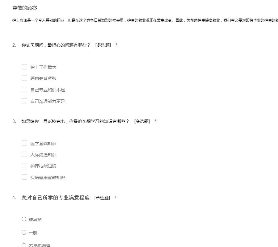 护理专业实习情况调查问卷(一)