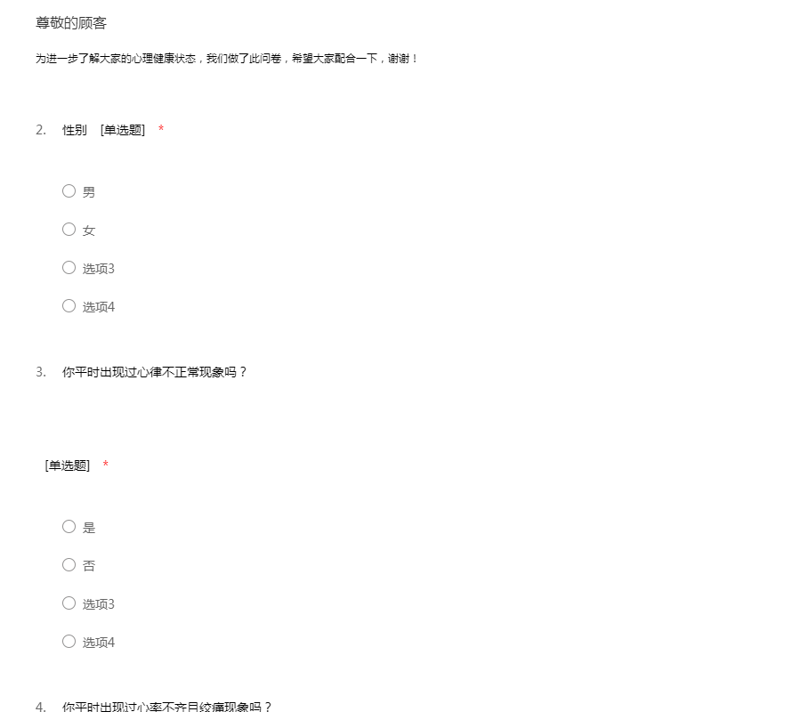 为进一步了解大家的心理健康状态,我们做了此问卷,希望大家配合一下,谢谢!