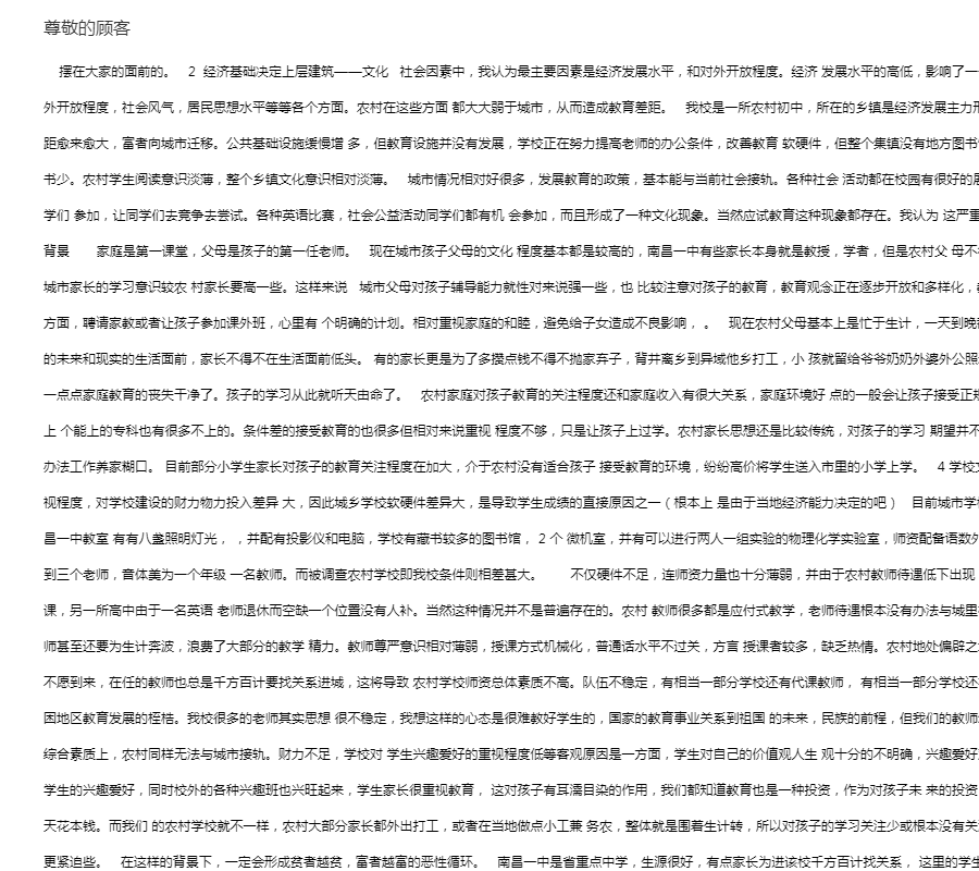 我认为一切不公平的现象都导致农村的学生,农村的家长和农村学校在今