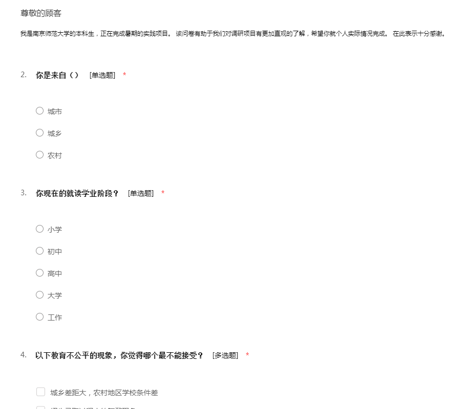 城乡教育差距调查问卷