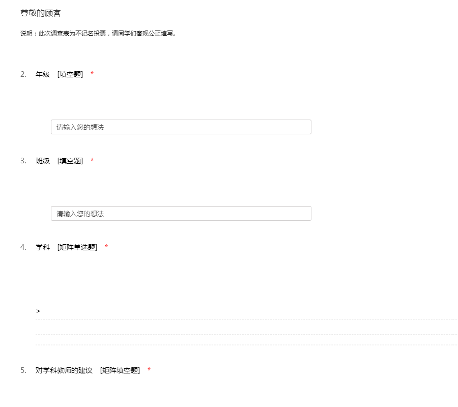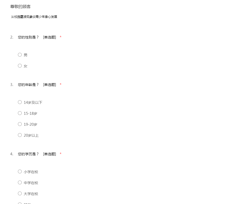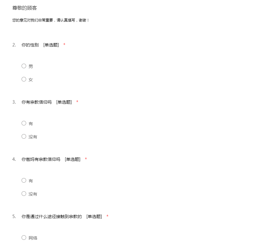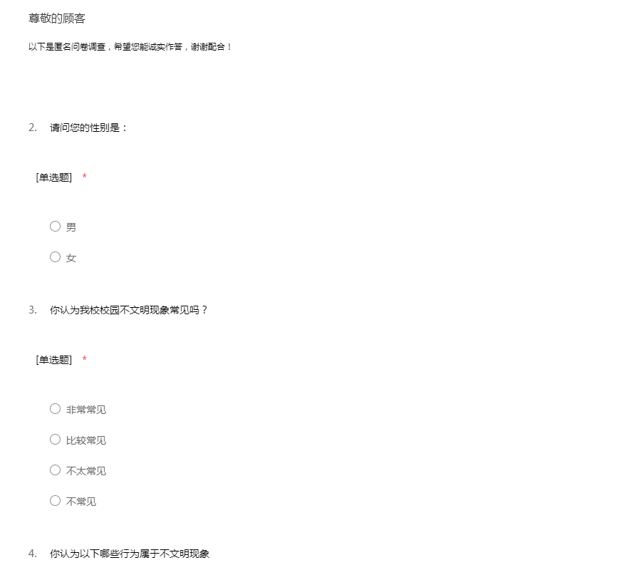以下是匿名问卷调查,希望您能诚实作答,谢谢配合!