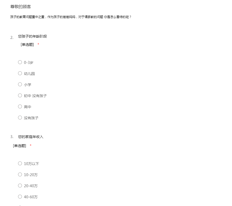 关于家教问题的调查问卷