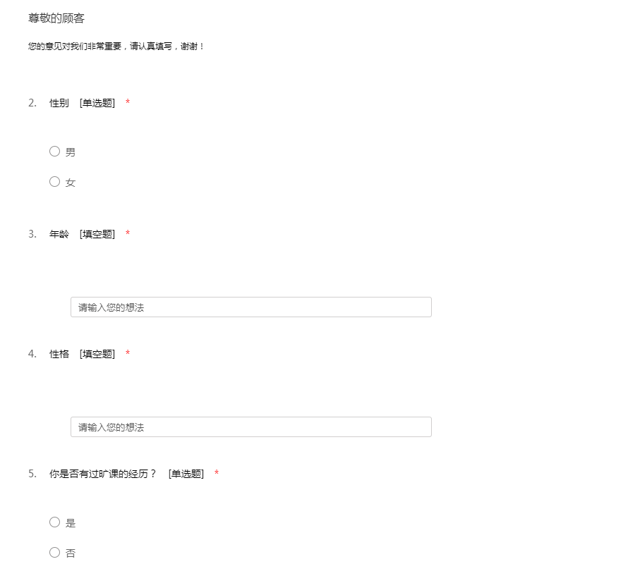 为了给您提供更好的服务,希望您能抽出几分钟时间,将您的感受和建议告诉我们,我们非常重视每位用户的宝贵意见,期待您的参与!现在我们就马上开始吧!