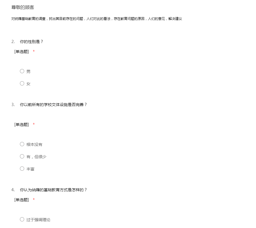 网络课程调查问卷