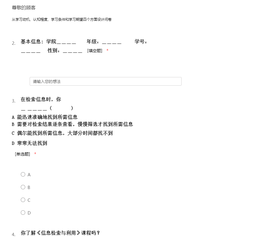从学习动机、认知程度、学习条件和学习期望四个方面设计问卷