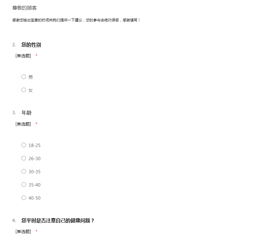 感谢您抽出宝贵的时间向我们提供一下建议,您的参与会绝对保密,感谢填写!