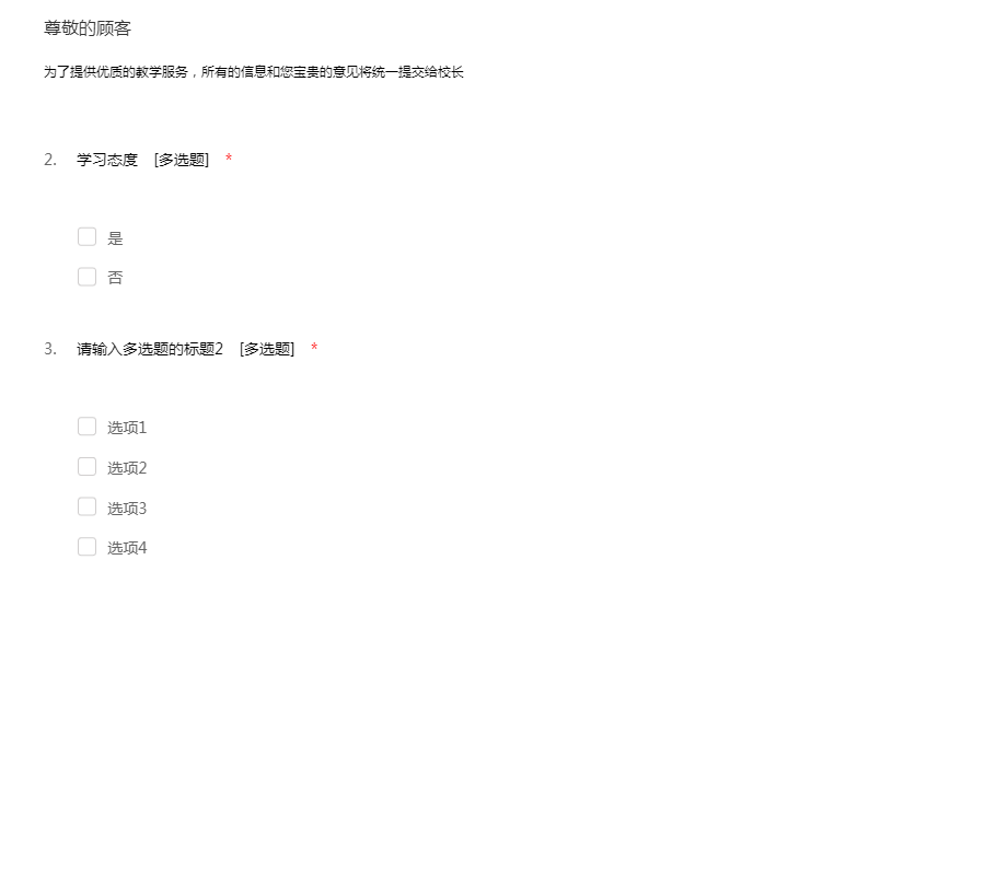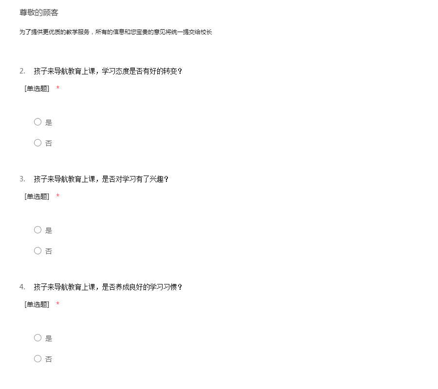 为了提供更优质的教学服务,所有的信息和您宝贵的意见将统一提交给校长
