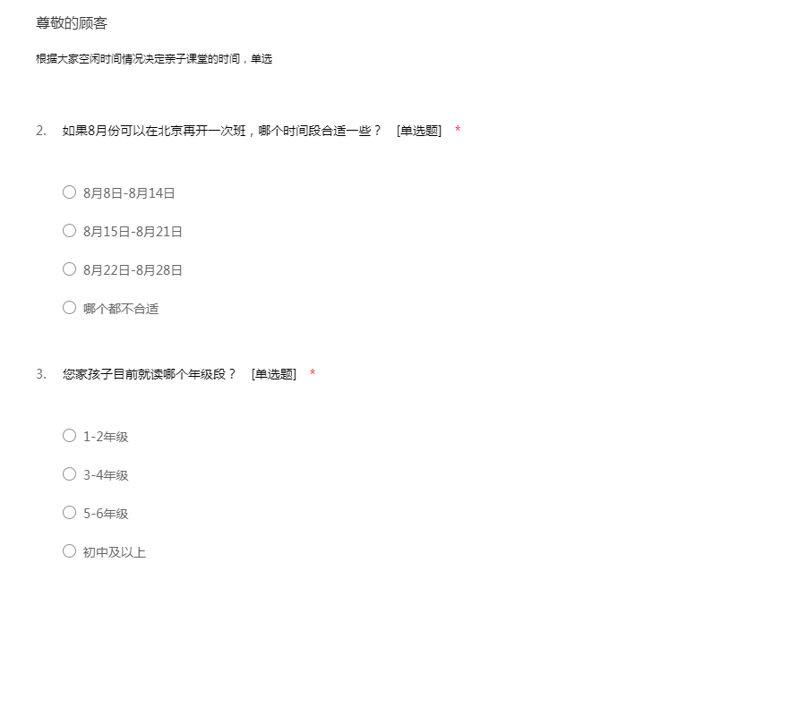 根据大家空闲时间情况决定亲子课堂的时间,单选