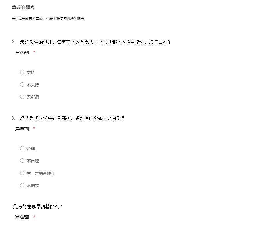如今中国教育公平的调查问卷