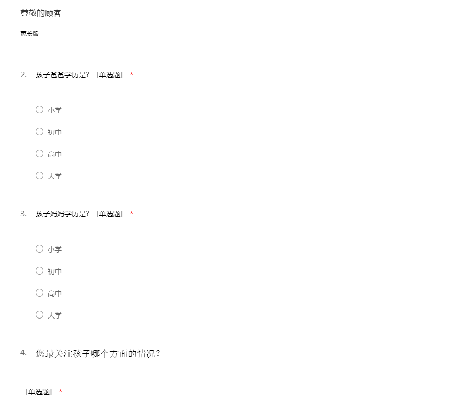 中国家庭教育问卷调查家长版