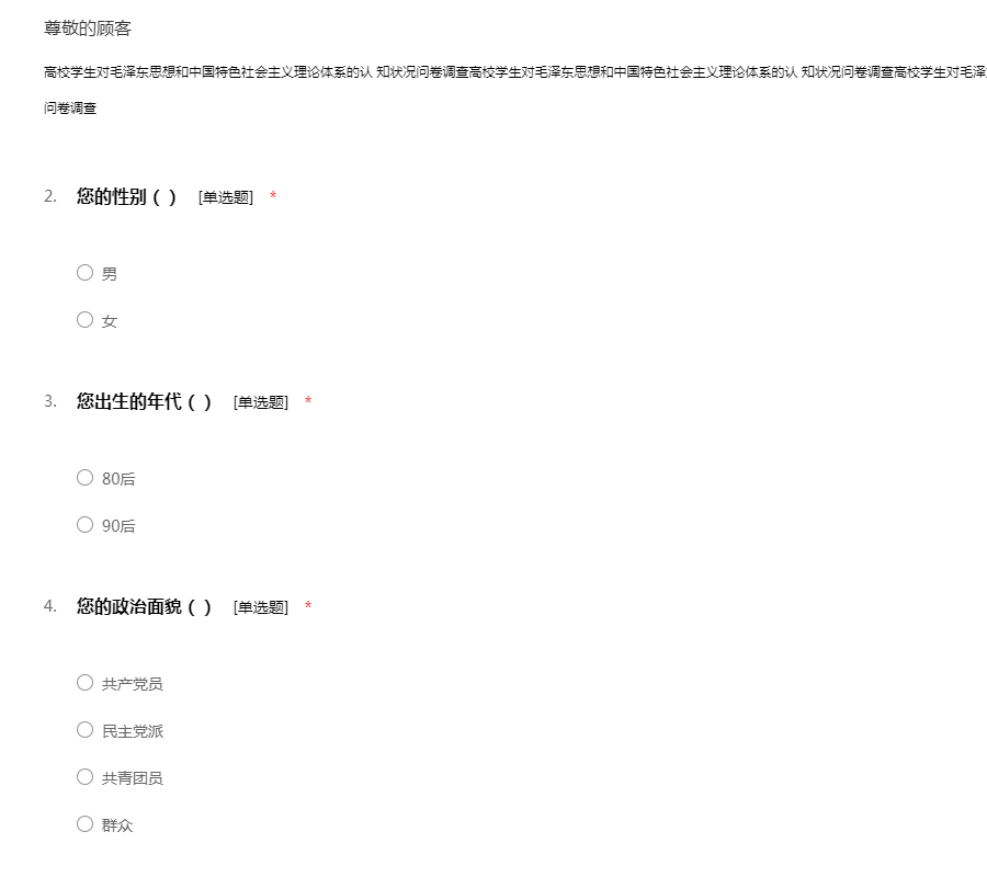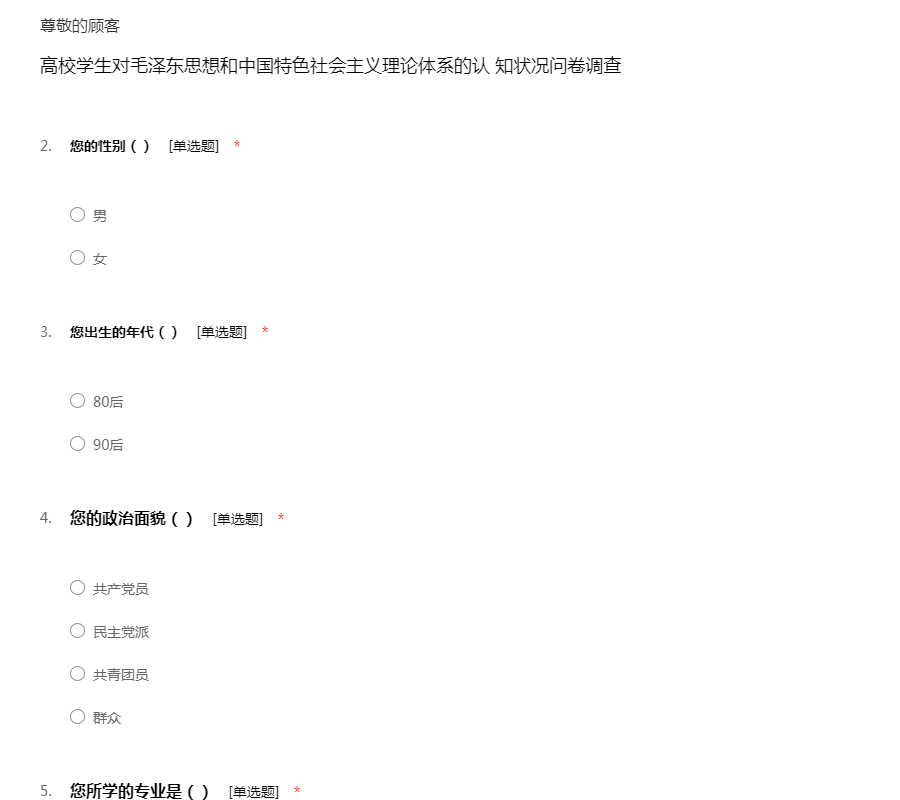 高校学生对毛泽东思想和中国特色社会主义理论体系的认 知状况问卷调查高校学生对毛泽东思想和中国特色社会主义理论体系的认 知状况问卷调查高校学生对毛泽东思想和中国特色社会主义理论体系的认 知状况问卷调查