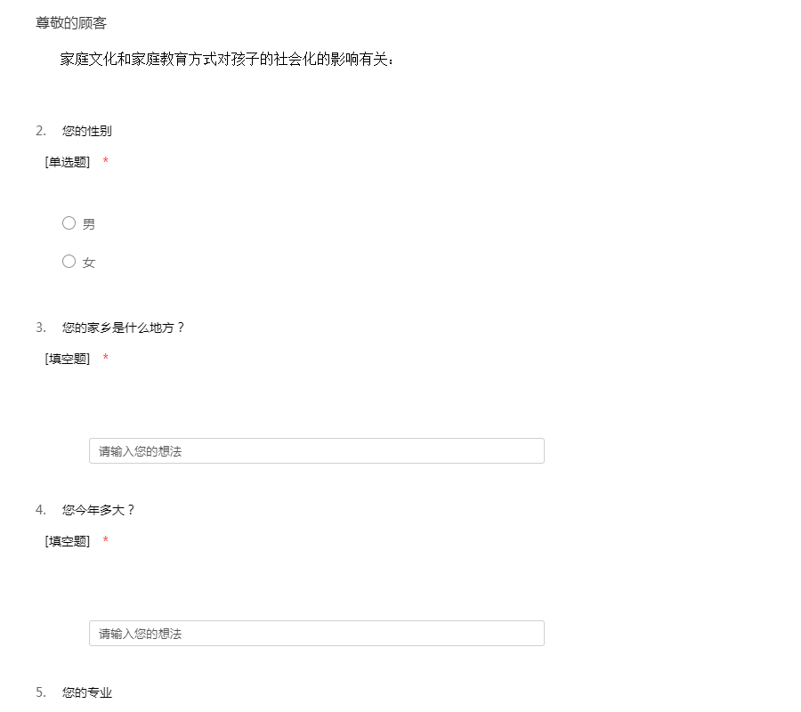 随着当前就业形势越来越严峻,本次针对市场就业等问题进行问卷调查,为了更好的了解社会公众对目前出现的就业问题,我们展开了这次调查,请各位务必真实坦率的回答每个问题,而您所填写的任何资料我们将保密,不会对您产生任何影响,谢谢您的支持与合作!