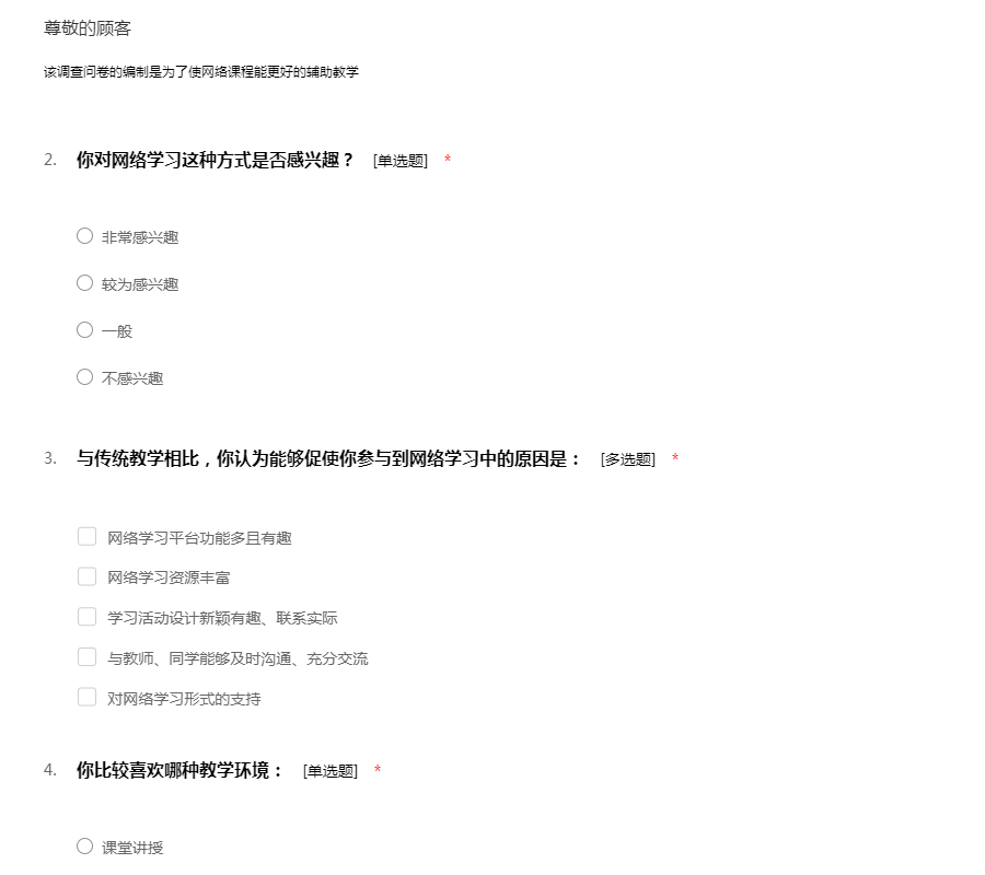 该调查问卷的编制是为了使网络课程能更好的辅助教学