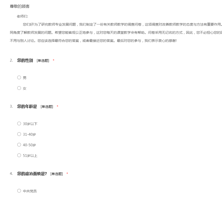 教师情况问卷调查