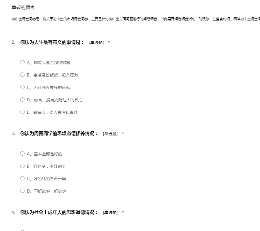 初中生调查问卷