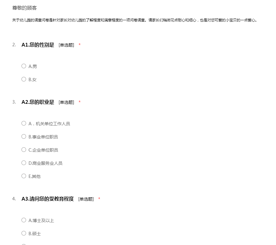 关于幼儿园的调查问卷