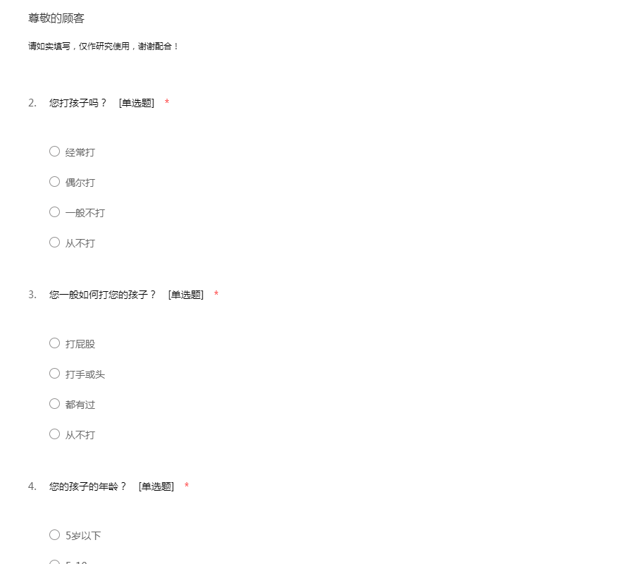 亲子教育调查问卷