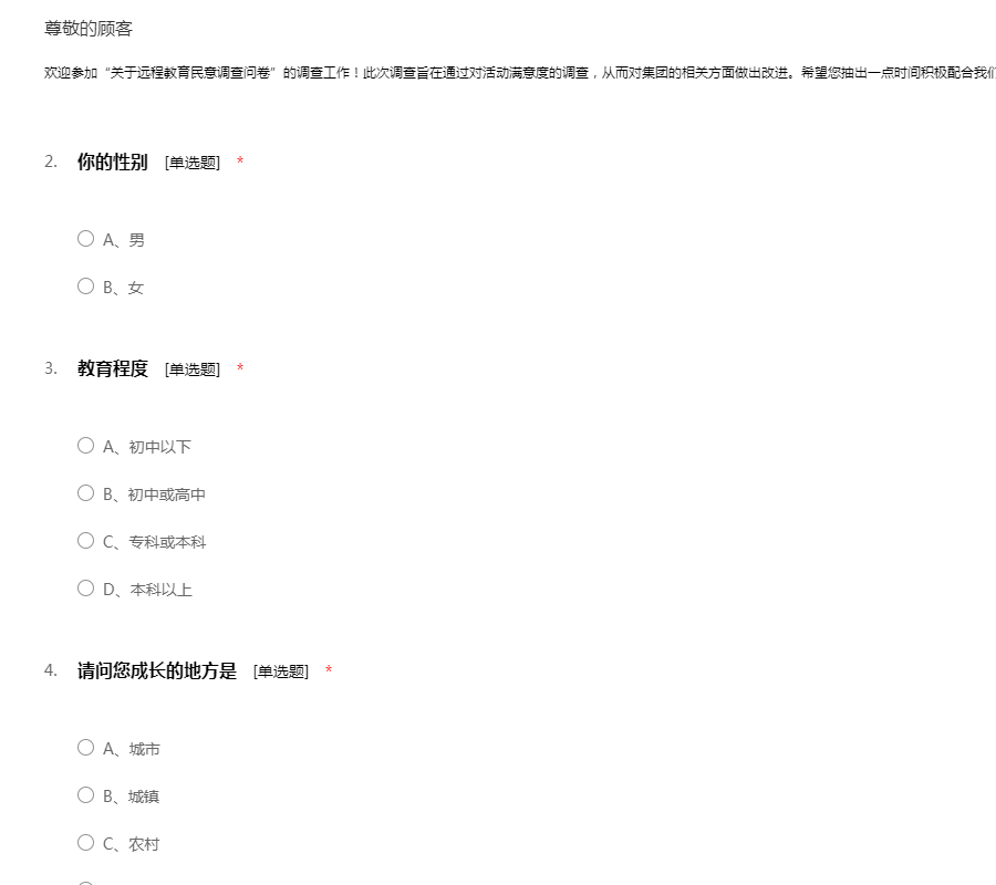 关于远程教育民意调查问卷