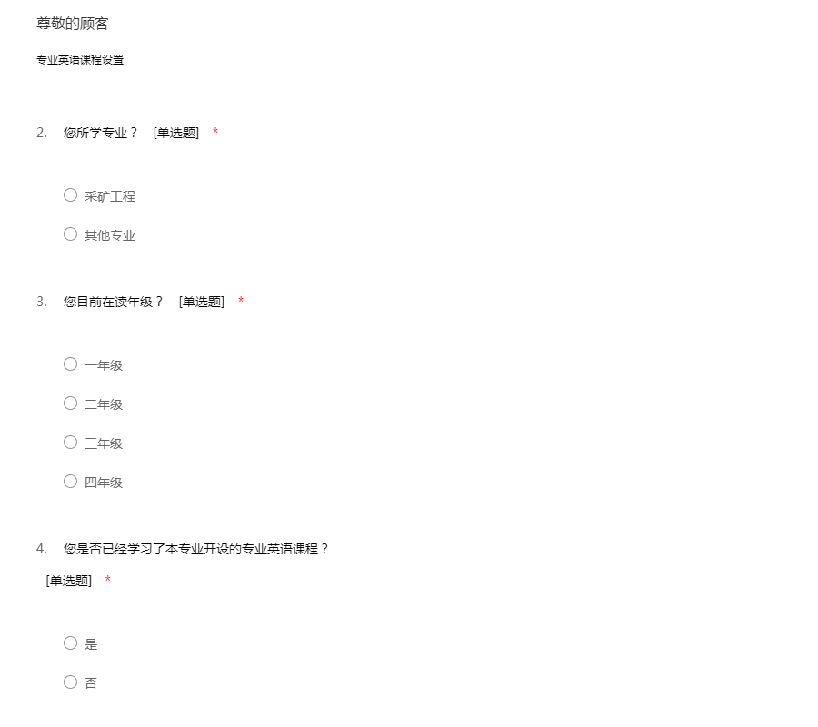 有关采矿工程专业英语课程设置相关问题调查