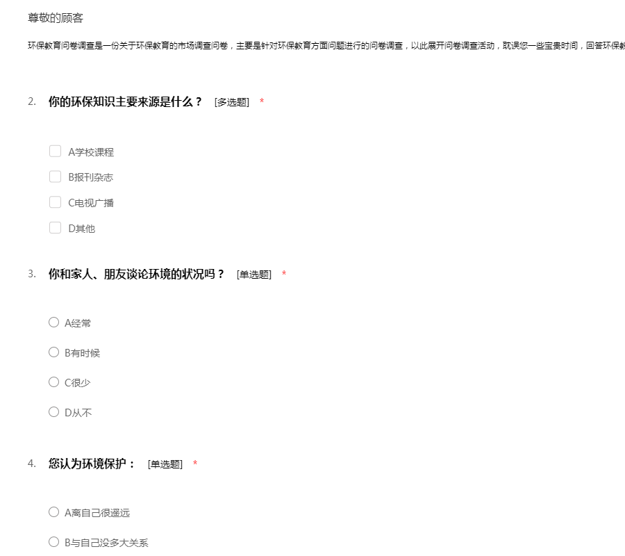 环保教育问卷调查