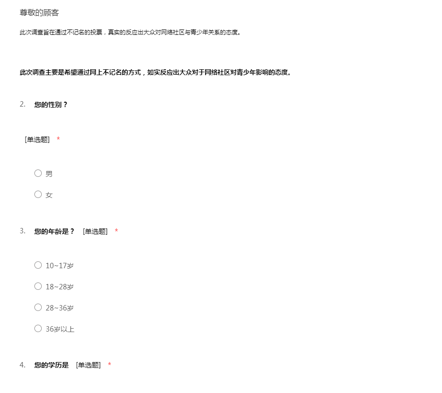 此次调查旨在通过不记名的投票,真实的反应出大众对网络社区与青少年关系的态度。