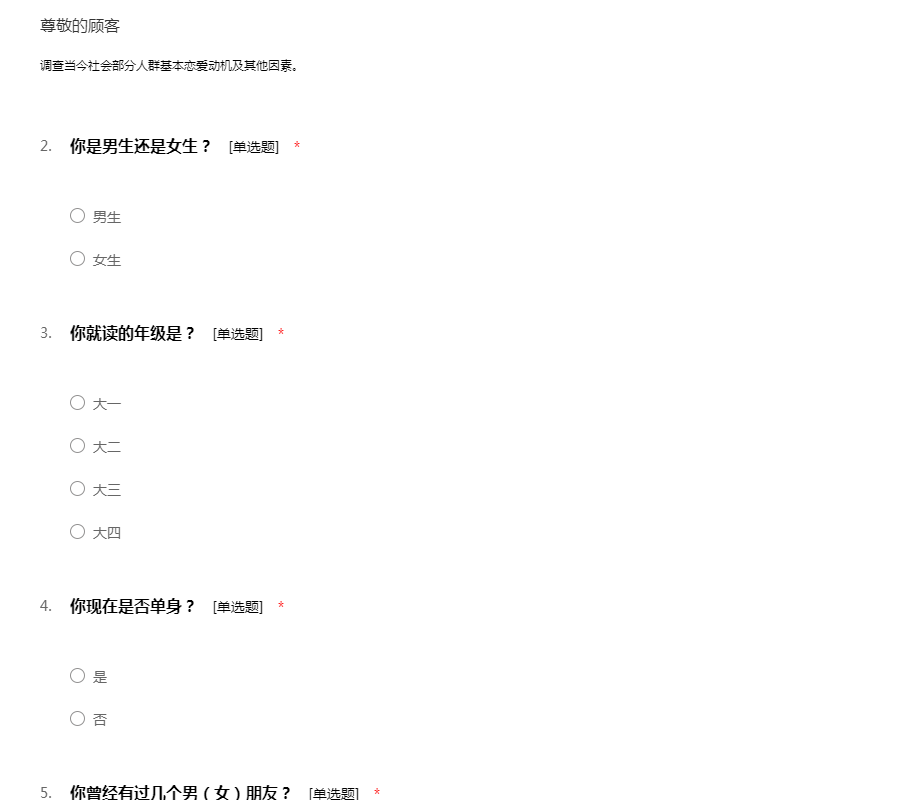 调查当今社会部分人群基本恋爱动机及其他因素。