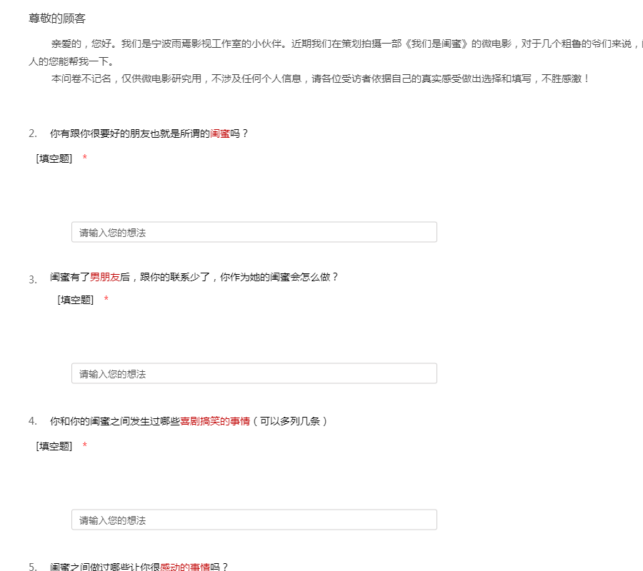 《我们是闺蜜》微电影问卷调查