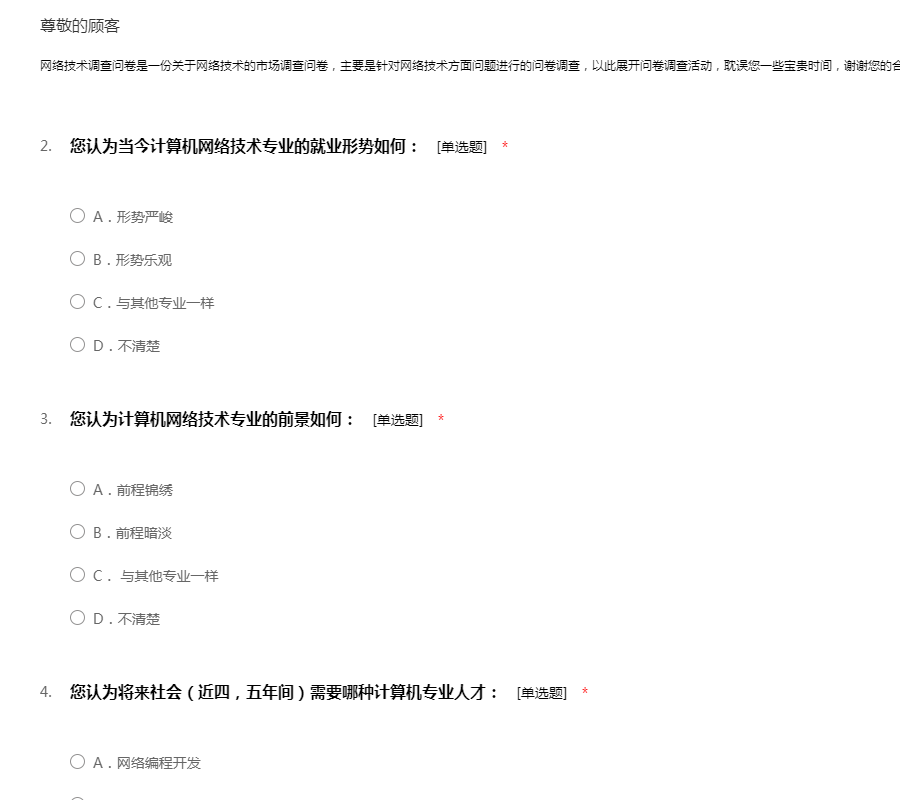 网络技术调查问卷是一份关于网络技术的市场调查问卷,主要是针对网络技术方面问题进行的问卷调查,以此展开问卷调查活动,耽误您一些宝贵时间,谢谢您的合作。