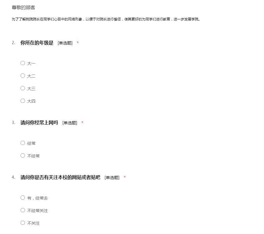 院长网络形象调查问卷