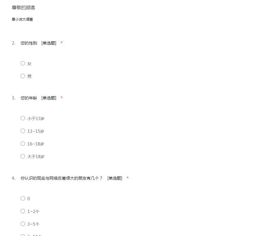 感谢您填写本次网络社交软件问卷调查。本次调查不涉及个人隐私,再次感谢~!!O(∩_∩)O~