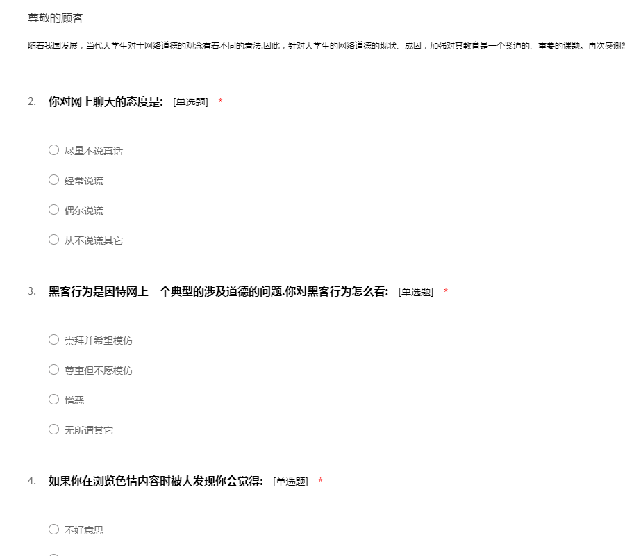 网络与道德观问卷调查