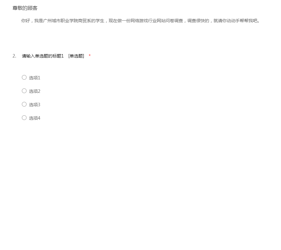 你好,我是广州城市职业学院商贸系的学生,现在做一份网络游戏行业网站问卷调查,调查很快的,就请你动动手帮帮我吧。