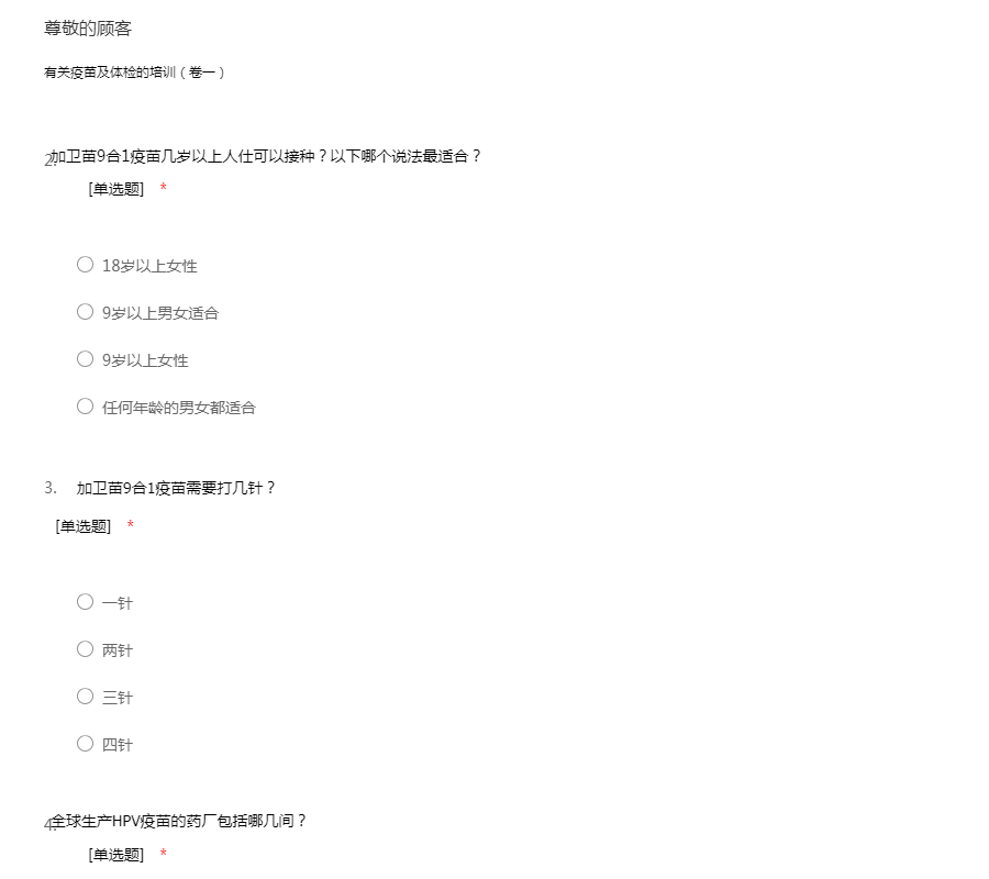 有关疫苗及体检的培训(卷一)