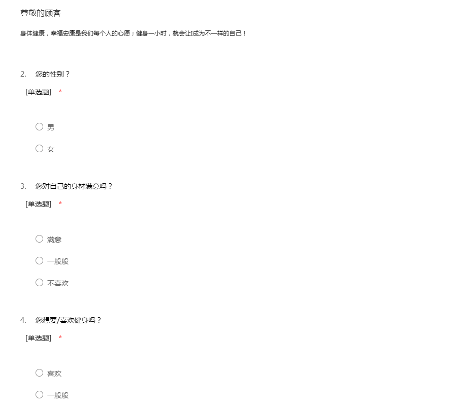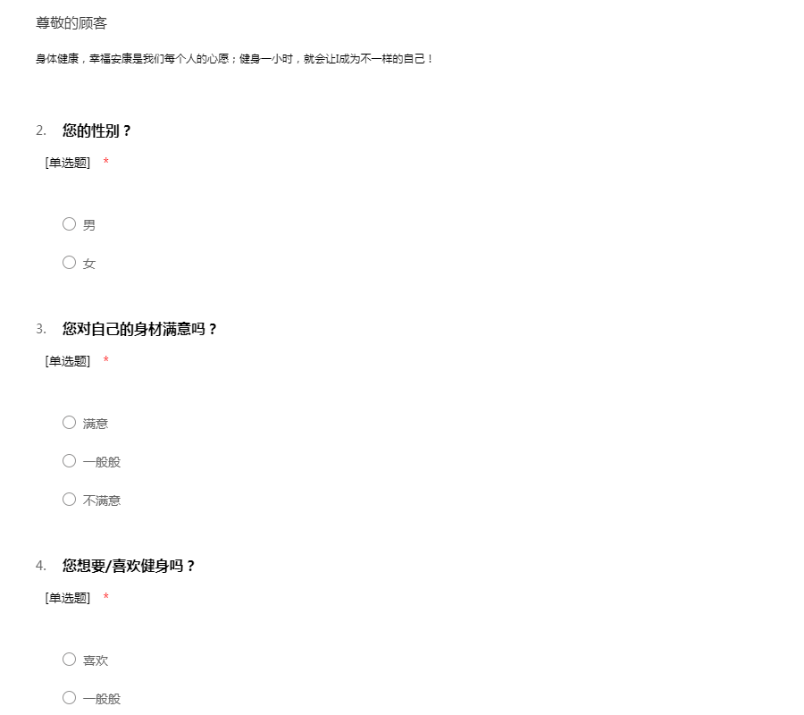 这是一个运动与康复的app 非常希望您给我们提供宝贵的意见,请您如实填写,在此代表团队表达谢意