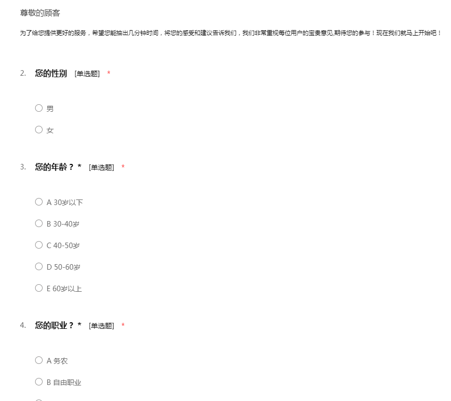 为了给您提供更好的服务,希望您能抽出几分钟时间,将您的感受和建议告诉我们,我们非常重视每位用户的宝贵意见,期待您的参与!现在我们就马上开始吧!