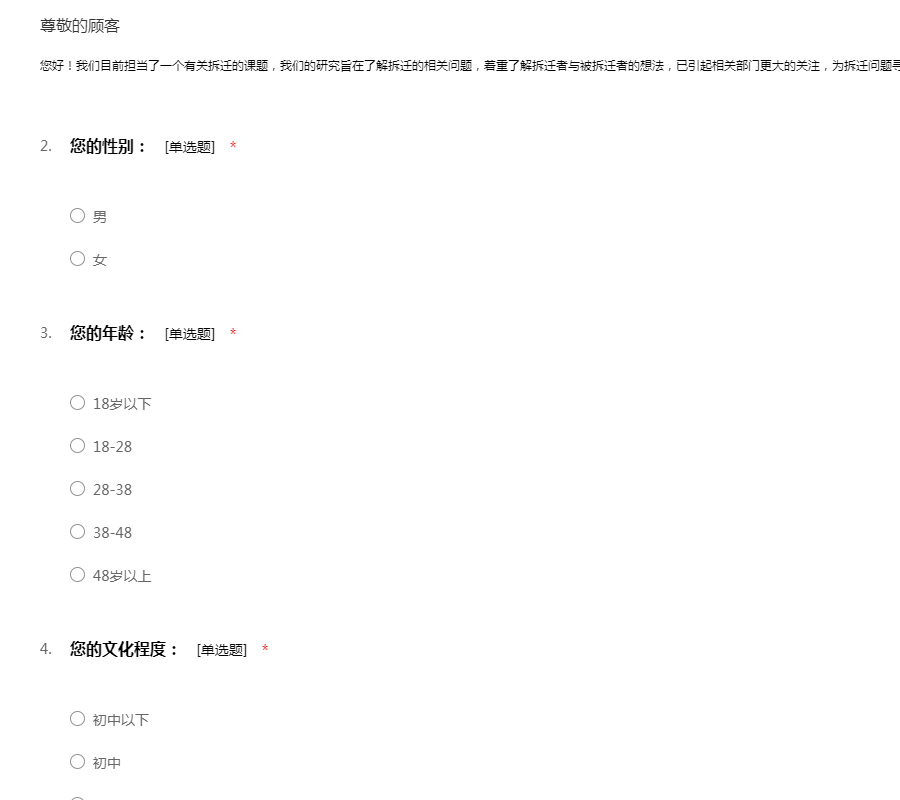 拆迁调查问卷