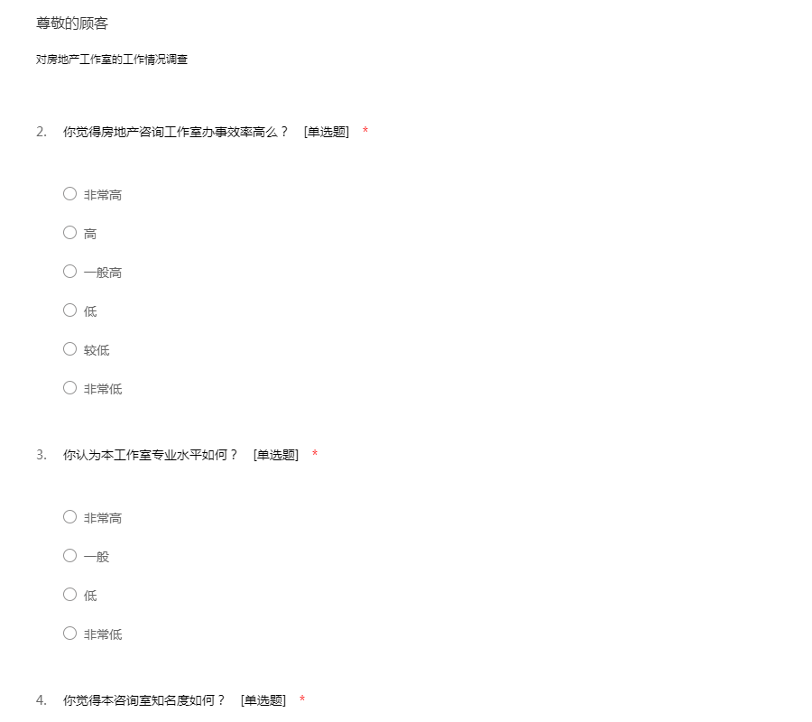 房地产咨询工作室调查表