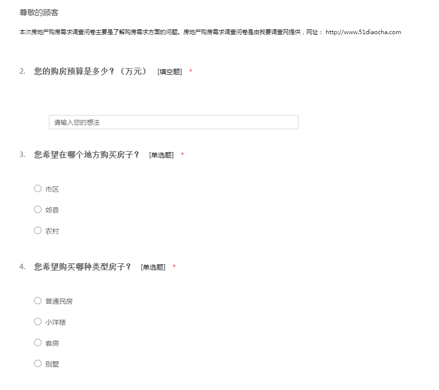 住房户型调查问卷