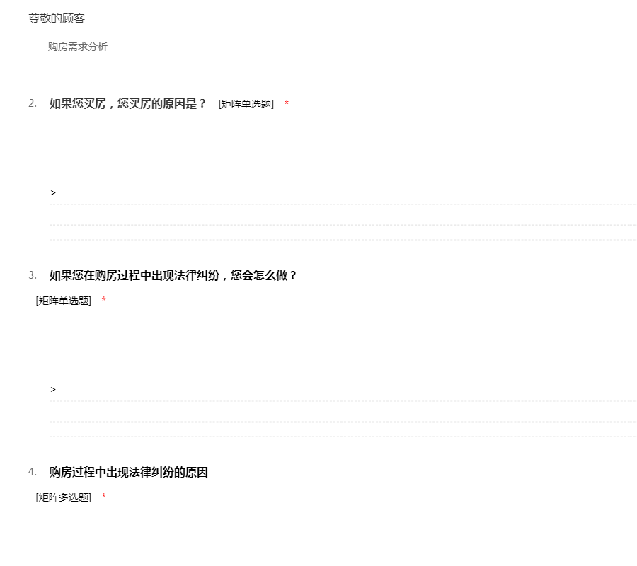 朋友,您好,需要一份关房地产行业进行营改增调查问卷的研究。您的宝贵意见,对我们非常重要。请您抽出一点时间,帮助我们完成这份调查问卷。本问卷不记名,所以请放心填写!感谢你的协助!