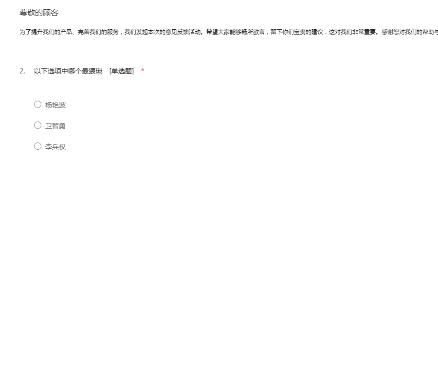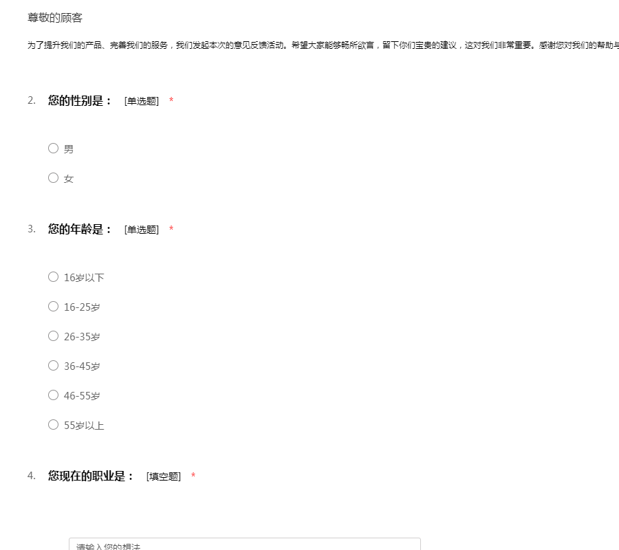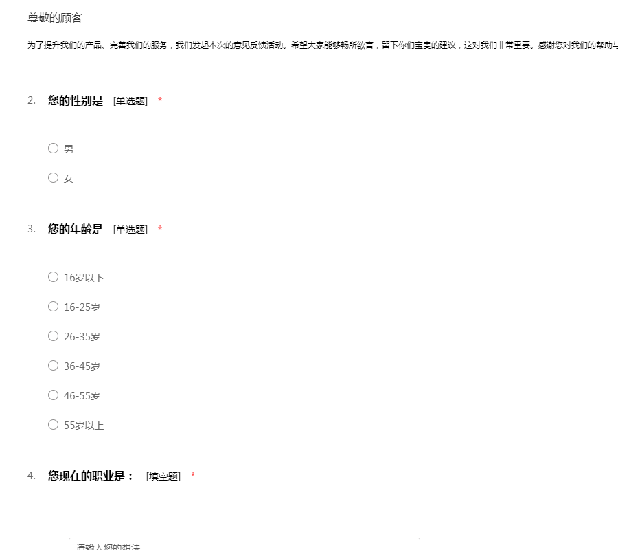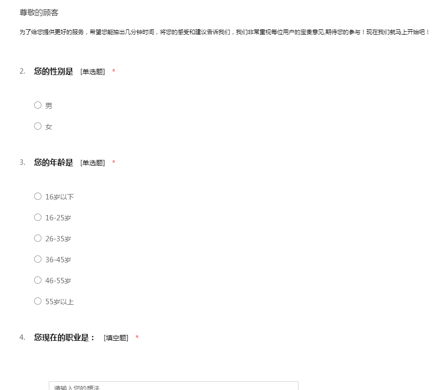为了给您提供更好的服务,希望您能抽出几分钟时间,将您的感受和建议告诉我们,我们非常重视每位用户的宝贵意见,期待您的参与!现在我们就马上开始吧!